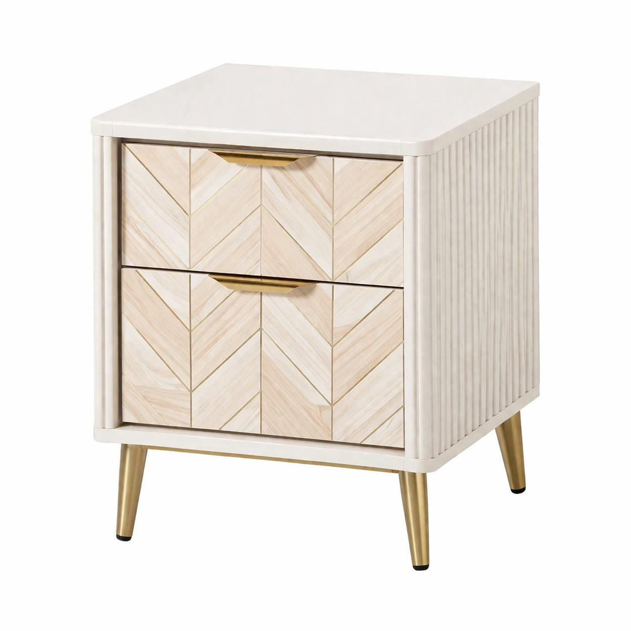 Mesita de noche de madera MDF con encimera de mármol y cajones de ratán